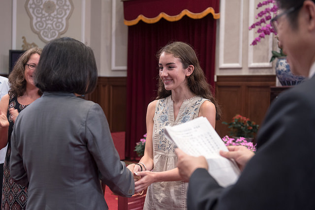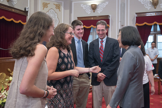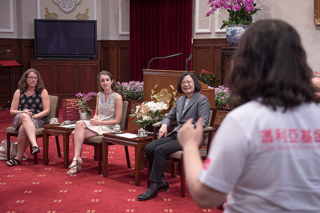 訪賓一行尚包括瑪利亞基金會執行長陳美鈴、格林文化出版社創辦人郝廣才,由衛生福利部次長呂寶靜陪同,前來總統府晉見總統,國家安全會議秘書長李大維也在座。