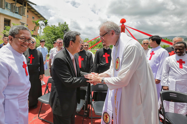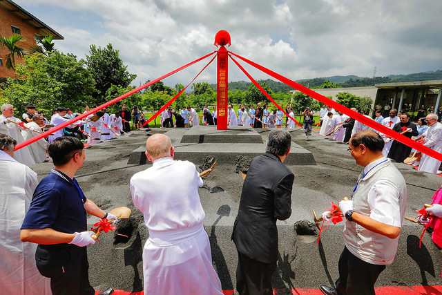隨後,副總統與宜蘭縣副縣長黃適超、議長陳文昌、靈醫會總會長Leocir Pessini、立法委員陳歐珀及聖嘉民老人長期照顧中心院長黃龍冠等共同進行動土儀式,祈願施工平安順利。
