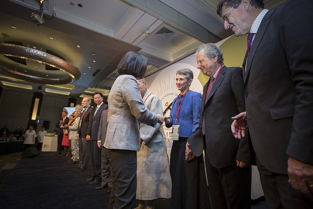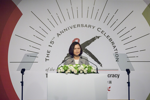 最後,總統感謝現場貴賓一同慶賀「臺灣民主基金會」創會十五週年。她相信臺灣受惠於各位的卓見與經驗,了解如何共同努力,為後代守護民主。