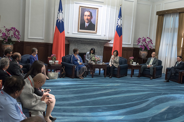 訪賓一行由外交部長吳釗燮及財團法人臺灣民主基金會執行長徐斯儉陪同,前來總統府晉見總統,國家安全會議秘書長李大維也在座。