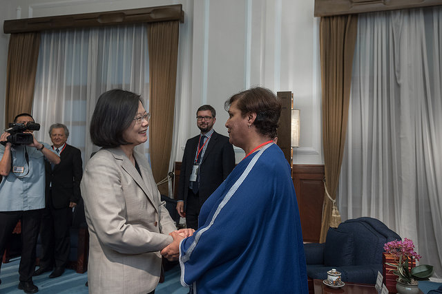 總統說,訪賓此次訪問臺灣,除了擔任臺灣民主基金會15週年國際會議的與談者,也參與該基金會主辦的「2018第5屆東亞民主論壇」。她相信在兩場活動上,訪賓一定見證到臺灣公民社會的活力和熱情。