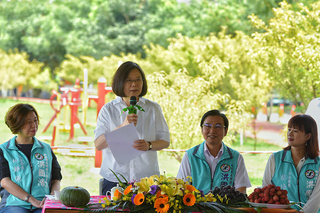 總統致詞時表示,今天來到「草屯植物公園」,微風輕拂,有蟬鳴聲,令她深感舒服。洪鎮長把這個以前是「墓仔埔」的地方,變成美麗的植物公園,可說是一位治理魔術師。