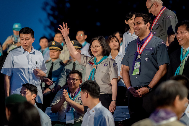 蔡英文總統今(1)日下午出席「2018年全國大露營開幕典禮」,除歡迎來自17個國家的童軍夥伴和貴賓共襄盛舉,也期許童軍夥伴勇敢接觸新的人事物、學習團隊互助精神及與來自各國的朋友多交流。