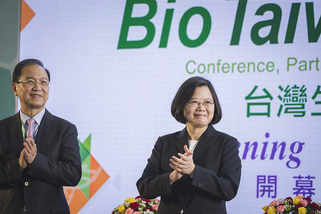 總統指出,這兩年來政府將生技醫藥產業列為重點產業,並且通過「生醫產業創新推動方案」。藉由這個方案,建立新創公司的扶育機制,也連結在地產業基礎以及國際市場趨勢,在臺北、新竹、臺中、臺南和高雄等地區,打造不同的生技醫藥特色聚落。