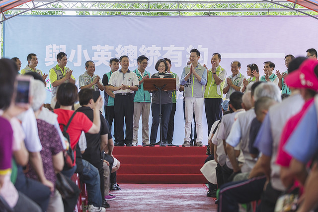總統致詞時表示,新竹縣有很多人才,可以帶領新竹縣走向未來。中央會支持地方在科技、客家文化的建設及發展計畫,也希望大家有信心,為新竹縣的下一代共同努力。
