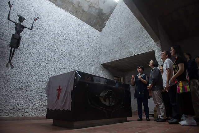 公東高工教堂為世界遺產基金會票選第一名的現代特色建築。總統在即將自八月起接任的黃淑英新任校長陪同解說下,參觀教堂聖堂,瞭解公東高工的創校過程及教堂建築的特色。
