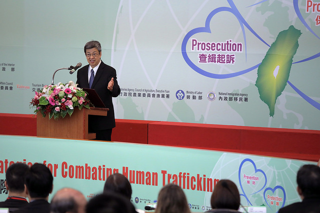 副總統致詞時表示,蔡總統上任以來,非常關注人權議題,尤其人口販運問題是世界各國普遍承認、嚴重危害人權的現代奴役行為,各國都極為重視,臺灣更是高度關切。
