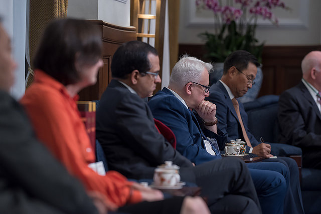 訪賓一行包括歐洲議會議員馬汀(David Martin)等,由外交部部長吳釗燮、遠景基金會董事長陳唐山陪同,前來總統府晉見總統,國家安全會議秘書長李大維也在座。