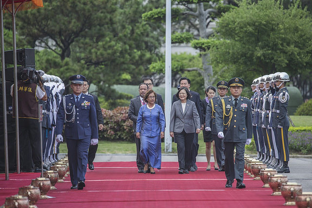 軍禮歡迎儀式於下午4時在總統府前廣場舉行,在鳴放21響禮炮、演奏兩國國歌及檢閱儀隊後,蔡總統與海妮總統分別致詞。