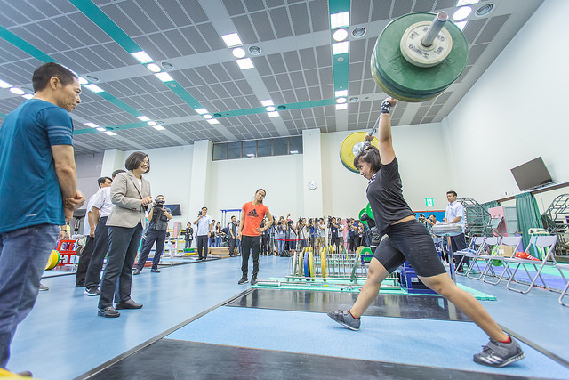 隨後,總統前往綜合重量訓練室、醫務室、體操場等場地,實地了解選手訓練、復健的情況,以及國訓中心二期工程的施工進度與期程。