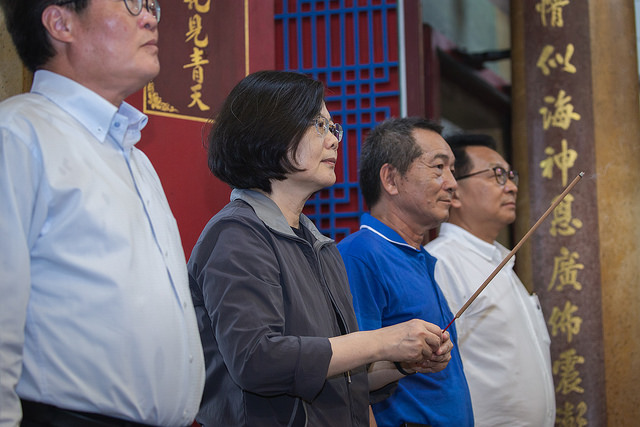 蔡英文總統今(3)日下午前往宜蘭開蘭慈雲寺參拜,祈求風調雨順、國泰民安,並說明政府執政成果,盼鄉親繼續大力支持政府,讓政府施政更好。
