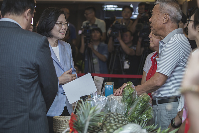 總統致詞時,首先向主辦單位「仰山文教基金會」創辦人、前行政院院長游錫堃致上感謝。她說,因為游前院長帶領「仰山文教基金會」的長期倡議,還有許多農業先進的支持,讓政府更有力量來推動農業改革。她很高興在執政之後,今(2018)年5月《有機農業促進法》終於順利通過。