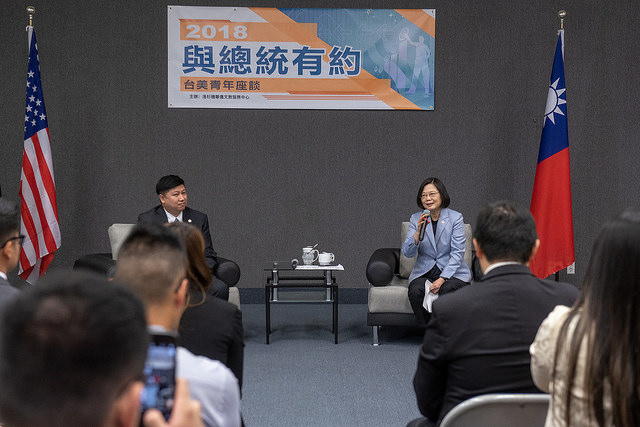 隨後,總統與在場臺美青年進行座談。針對如何吸引青年回臺就業及投資,總統回應表示,自從她上任之後,就賦予僑委會一個任務,希望真正連結臺灣與僑界,而不是只有傳統僑社關係的感情連結。因此她也請僑務委員會盡快設立窗口,進而引導到國內平台,負責整合科技部、經濟部、國發會等各相關部會的資訊、資源及機會,提供給僑民,以建立僑界與臺灣的連結。總統強調,臺美青年如果要回來發展,政府會負責導入與臺灣社會的連結,「現在是最好的機會,千萬不要錯過」