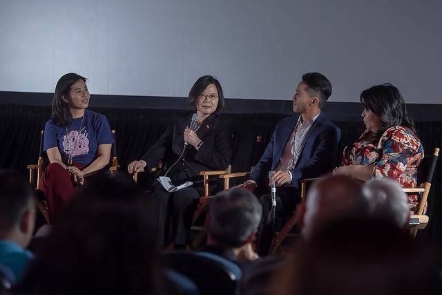 蔡英文總統「同慶之旅」於當地時間8月13日(週一) 下午2時(臺北時間14日上午5時)參加第二屆「臺美電影節」(Annual Taiwanese American Film Festival, TAFF)回顧活動。