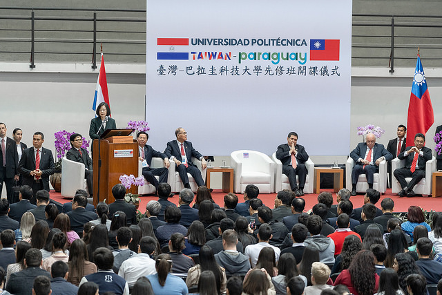 蔡英文總統「同慶之旅」於8月14日(週二)上午(臺北時間晚間)在巴拉圭共和國卡提斯(Horacio Cartes)總統陪同下,於臺巴科技大學先修班開課儀式發表專題演講。