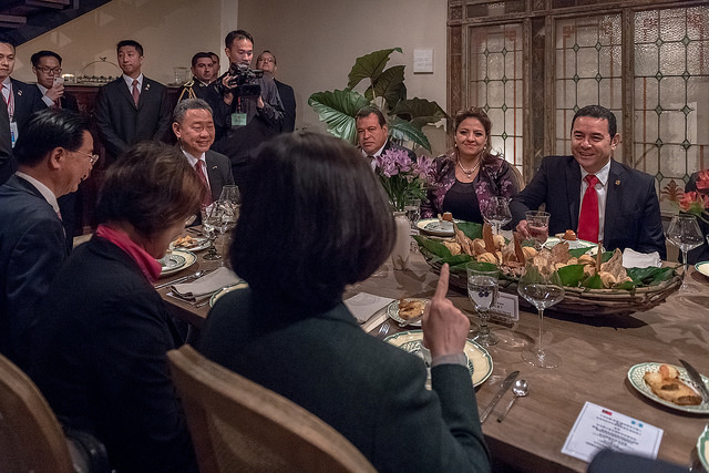 蔡副秘書長表示,蔡總統也於今日晚上與瓜地馬拉總統莫拉雷斯(Jimmy Morales)進行晚餐會談。兩國元首針對彼此未來合作關係交換意見,因為是非正式的會談,因此大部分時間多在敘舊,並且交換兩國領導人對於近日(國際)情勢的看法與意見交換,氣氛相當融洽。莫拉雷斯總統也在晚宴現場,將他自己與蔡總統會談及晚宴的照片上傳至他個人的Twitter,顯示他對本次會談的重視,也希望能即時分享相關的資訊,讓瓜地馬拉的國人一起了解這次會談的情形。