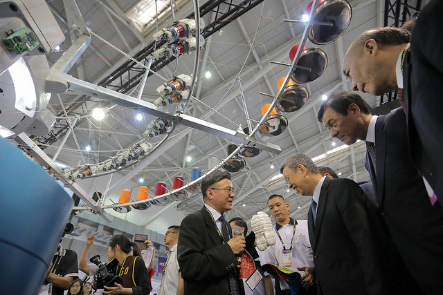 副總統提到,與日常生活密不可分的鞋類產品,也從傳統勞力密集轉向環保節能、智慧化及自動化生產,因此製鞋機械在國際鞋業產業鏈中,同樣扮演不可或缺的重要角色。我國製鞋機械遍佈全球,市占率高達七成,希望未來透過知名鞋類國際品牌及臺灣製造的製鞋機械緊密合作,讓MIT的實力帶動全球製鞋業的升級。