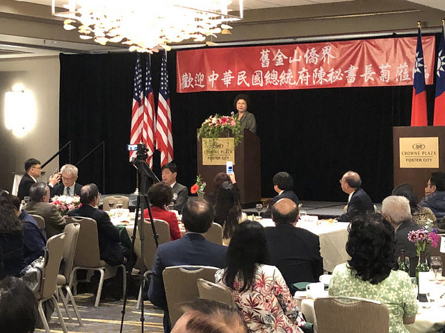 總統府秘書長陳菊陪同總統蔡英文「同慶之旅」出訪,在總統蔡英文飛往中南美洲後隨即前往舊金山,並在舊金山時間14日下午前往北加州會館關心僑胞並與僑胞會談,更在晚間與近200位僑胞餐會發表演說。陳菊秘書長感謝海外臺灣人對臺灣民主化付出,更期待臺美人持續支持臺灣改革,推動產業進步發展,深化臺灣的國際競爭力。
