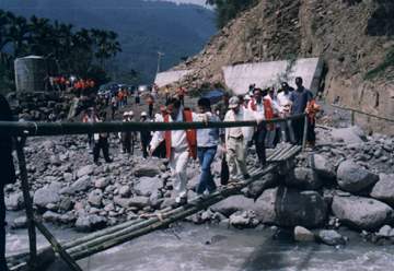陳總統水扁先生今天在總統府陳哲男副秘書長、九二一災後重建委員會黃榮村執行長、經濟部林信義部長、交通部葉菊蘭部長、農委會陳希煌主委和原住民委員會尤哈尼主委等人的陪同下,再次前往桃芝颱風災區勘察災損及關切各項救災情形。