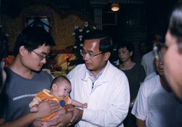 最後,總統轉往彰化縣員林鎮,向被大水沖走而罹難的青山國小許碧蘭老師靈前致悼及慰問其家屬,總統並一一翻閱許老師生前的照片,也疼惜的抱著許老師兩個月大的兒子心疼不已,而許碧蘭老師對教育、對學生的愛,總統也特別表達崇敬之意,並表示應予以明令褒揚,同時對於她的罹難甚覺哀悼和不捨。