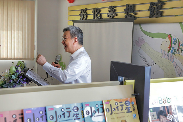 隨後,副總統參觀「彰化育兒親子館」內「寶寶爬行區」、「二手玩具交換站」、「親子共讀閱讀區」等設施及環境,親切與民眾及其小寶貝們互動,現場氣氛溫馨愉悅。