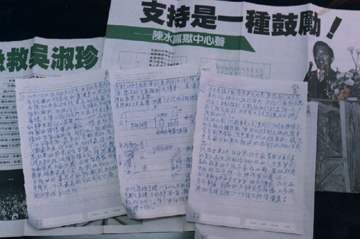 下午,珍、許委員、鄭余鎮委員等第一次特別接見,相見歡,不像一般的受刑人,事實上也是無罪也坐牢,就當做是唸政研所,修八個月的碩士班好了。