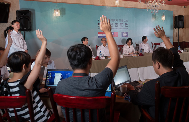 蔡英文總統「同慶之旅」於8月17日(週五)下午(臺北時間18日上午)與隨團記者茶敘,說明此行成果,也回應隨團記者提問。