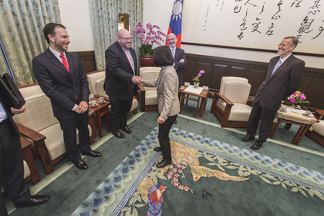 訪賓一行由外交部長吳釗燮陪同,前來總統府晉見總統,國家安全會議秘書長李大維也在座。