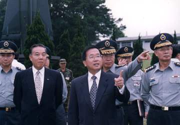 陳總統水扁先生今天上午在國防部長伍世文、參謀總長湯曜明一級上將、總政戰部主任鄧祖琳上將陪同下,視導北部地區陸軍飛彈部隊,慰勉官兵戮力戰備的辛勞,並對官兵講話。