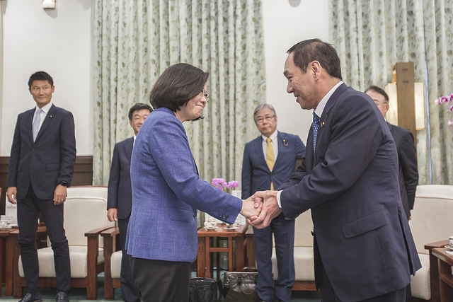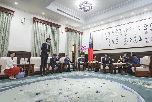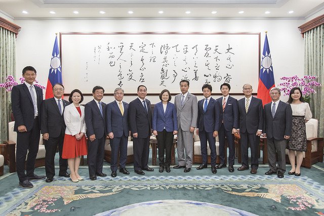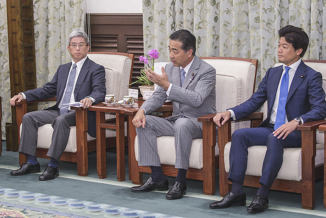 訪賓一行尚包括「日本台灣交流協會」代表沼田幹夫、日本自由民主黨參議員小川克巳、足立敏之、朝日健太郎、自見英子、佐藤啟、元榮太一郎及藤木真也等,由外交部次長徐斯儉陪同,前來總統府晉見總統,國家安全會議秘書長李大維也在座。