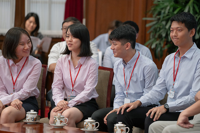 訪賓一行由教育部次長林騰蛟、國立臺灣科學教育館館長陳雪玉陪同,前來總統府晉見總統,總統府秘書長陳菊也在座。