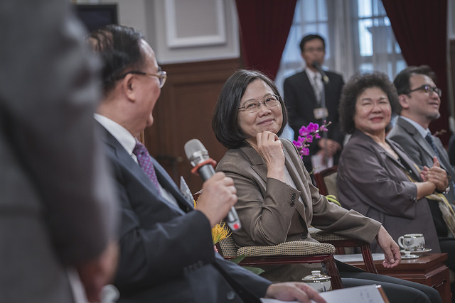 總統致詞時表示,非常高興能夠與績優捐血人代表見面,並對他們長期熱心捐血助人的善行,表達最高的肯定和謝意。她指出,這些捐血代表來自各行各業。不論來自什麼地方、什麼崗位,都不忘持續進行捐血救人的工作。「這種不分你我,互愛互助的精神,讓我相當感動。」