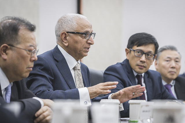 隨後,總統與訪賓針對成立智庫、美中貿易戰下臺灣的契機、如何吸引國外人才、教育及培訓國內高科技人才計畫等議題進行意見交換。