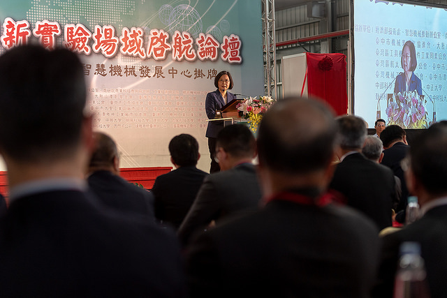 總統說,今天的「2018科技創新實驗場域啟航論壇」和中心揭牌儀式,則是推動臺灣成為「智慧機械與製造發展中心」的另一個重要里程碑。「智慧機械」產業,是「5加2產業」中成長最快速的產業,而臺中是臺灣最重要的「智慧機械」基地。我們有一個非常重要的目標,要將臺中打造為「全球智慧機械之都」,成為國際級科技和產業的領頭羊。