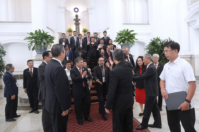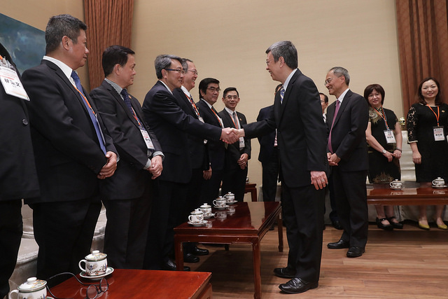 訪賓一行30餘人,由「世界留臺校友會聯誼總會」總會長韓保定陪同,前來總統府拜會副總統,僑務委員會委員長吳新興亦在座。