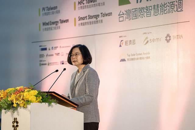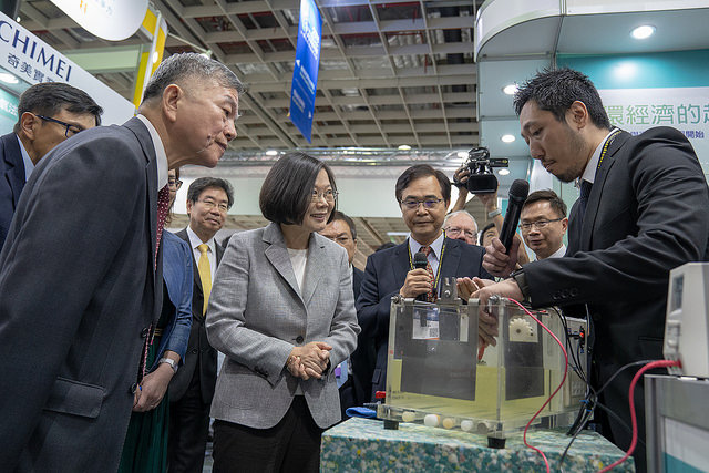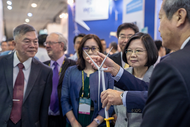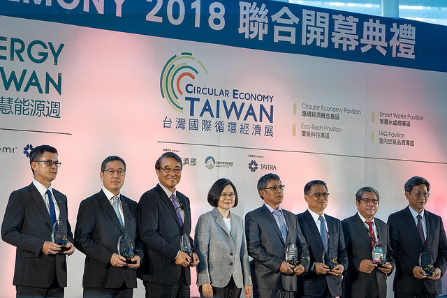 蔡英文總統今(19)日上午出席「2018年臺灣國際智慧能源週、臺灣國際循環經濟展聯合開幕典禮」,說明臺灣有全世界公認最好的風場及離岸風電開發環境,未來透過環保與科技結合,臺灣將走向循環經濟的時代,並期盼全世界一起來投資一個綠能、環保的臺灣。