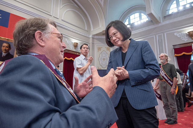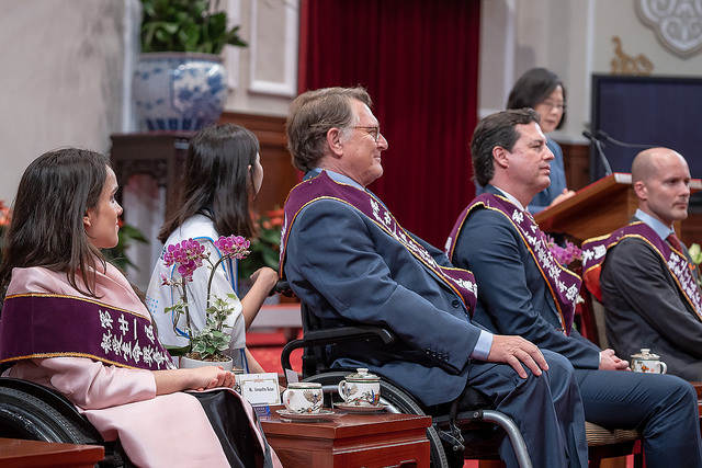 「第21屆全球熱愛生命獎章」得主一行50餘人,由「周大觀文教基金會」創辦人周進華、董事長郭盈蘭及衛生福利部次長呂寶靜陪同,前來總統府晉見總統,國家安全會議秘書長李大維也在座。