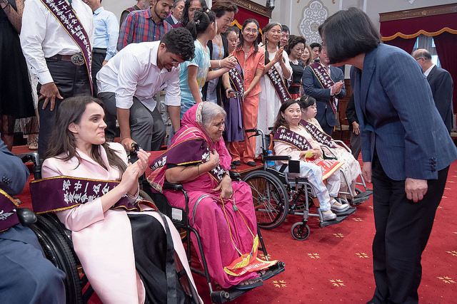 總統進一步舉例指出,來自烏克蘭的輪椅模特兒亞歷珊卓‧庫塔斯(Alexandra Kutas) ,從小行動不便的她,立志要成為模特兒,經歷幾百次的試鏡,屢敗屢戰,終於成為烏克蘭第一位身障模特兒,挑戰了既有的框架,也重新定義了美麗。