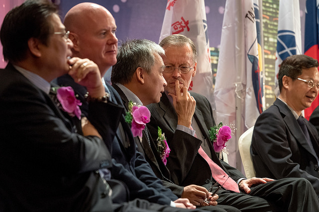 總統說,此外,我們也成功吸引國際大廠來臺,引進國際級技術與資金。像是微軟、Google、思科、亞馬遜等國際級大企業,都看好臺灣的發展與未來性,他們選擇加碼投資,或是擴大在臺灣的計畫。另外,臺中精密機械科技創新園區也已經有德國西門子、法國達梭、美國洛克威爾及日本三菱等世界級廠商進駐合作。