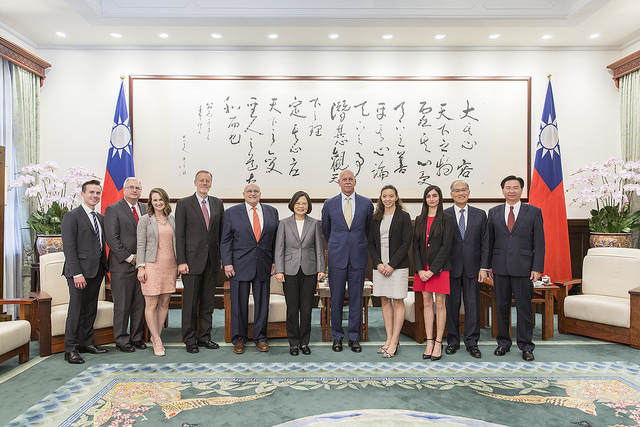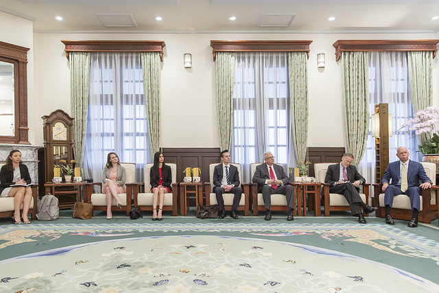 訪賓一行尚包括「2049計畫研究所」執行主任石明凱(Mark Stokes)等,由外交部長吳釗燮及「美國在台協會」(AIT)台北辦事處處長酈英傑(William Brent Christensen)陪同,前來總統府晉見總統,國家安全會議秘書長李大維也在座。