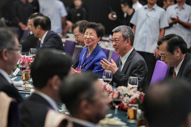 副總統請大家放心,針對美中兩國的貿易衝突,政府已召開對外經貿戰略會談,預擬美中衝突對國際及我國造成的影響,並針對各種可能情勢的演變,做好各項因應及調整的工作,全力將外在的挑戰,轉化為臺灣經濟和臺商轉型升級的契機。