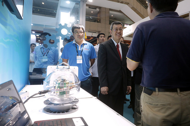 隨後,副總統與貴賓共同進行啟動儀式,為博覽會正式揭開序幕;並參觀Microsoft、NISSAN、中研院無人機、天奕科技、智慧機械工廠等展示攤位,瞭解各項最新科技發展情形。