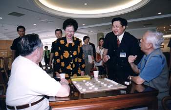 呂副總統秀蓮女士對老人安養問題一向關心,今天上午特別邀同婦女界代表前往淡水,訪視潤福老人安養中心,除聽取簡報外,也參觀了該中心的各項設施,並親切地和在該中心安養的老年人寒暄、問好。