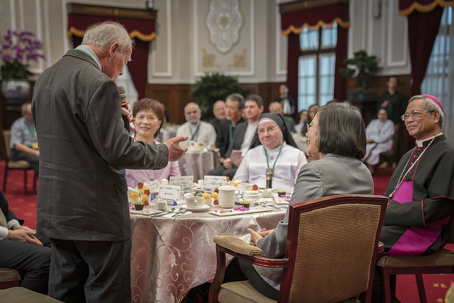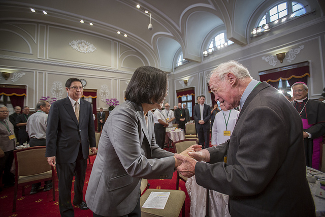 蔡英文總統今(1)日上午接見「在臺灣服務奉獻之天主教資深外籍神職人員」,感謝他們對臺灣付出的愛與貢獻,並表示,為回報天主教神職前輩,政府透過「馬偕計畫」及《國籍法》,提供生活上的優惠,能夠透過這個管道歸化為中華民國國籍,讓臺灣也能夠照顧大家。