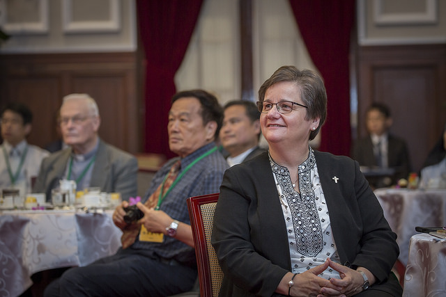 總統致詞時表示,在場的天主教前輩們,在臺灣服務奉獻的年資,加起來超過1,200年,平均每個人在臺灣服務的年資有36年,對此奉獻的精神,持之以恆、對臺灣的愛和照顧,她由衷的感謝。