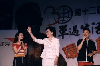 呂副總統秀蓮女士今天晚上前往台北火車站演藝廳參加「環島飢餓列車」閉幕晚會,以實際行動向參與十二屆全球救援行動的所有國人表達由衷的敬佩之意。