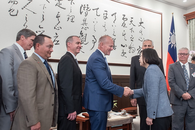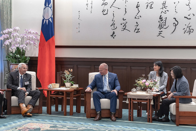 訪問團一行由外交部長吳釗燮陪同,前來總統府晉見總統,國家安全會議秘書長李大維也在座。
