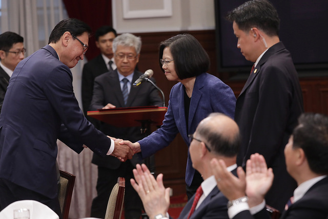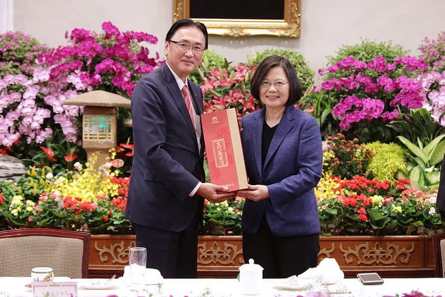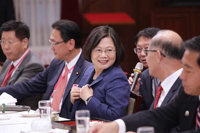 總統提及,今年三月古屋會長就任以來,「日華懇」更多次發表決議文,包括支持臺灣參與WHA、反對航空公司被迫更名、以及在臺灣和薩爾瓦多斷交之後力挺臺灣,希望促成臺日在第三國合作。這些重要的支持,給了我們許多溫暖跟力量,她要代表臺灣人民,向訪賓表達感謝。