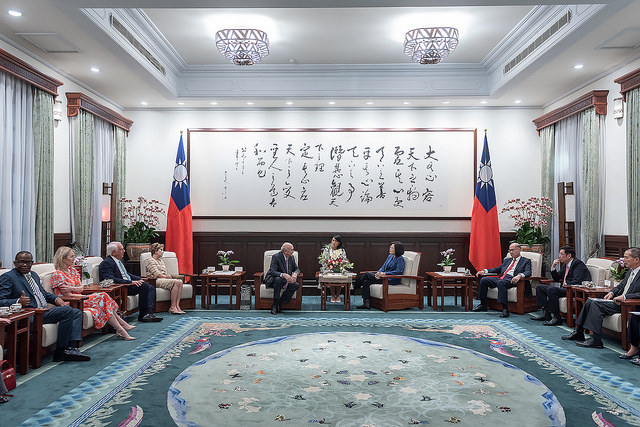 訪賓一行由外交部亞西及非洲司長劉邦治陪同,前來總統府晉見總統,國家安全會議秘書長李大維也在座。