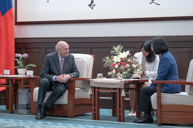 總統提及,她很同意戴克拉克前總統的觀點。臺灣會堅持價值,和理念相近的國家共同努力,也盡到對國際社會的責任。她期待,往後不論是跟南非政府、南非社會,以及「戴克拉克基金會」之間,我們都能有更多交流跟合作的機會。最後,總統再度表示歡迎戴克拉克前總統伉儷來訪,並祝福臺灣與南非,都能因為不同族群文化的共存共榮,而持續發光發亮。